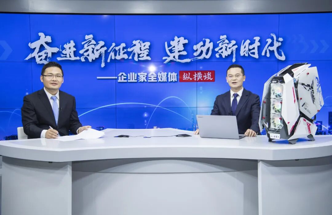 5月5日,湖北攀升电脑创始人、董事长陈孝军(右)做客湖北日报企业家全媒体纵横谈。(湖北日报全媒记者 魏铼 摄)