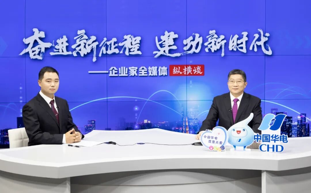 华电湖北发电有限公司党委书记、董事长刘强(右)做客湖北日报企业家全媒体纵横谈。(湖北日报全媒记者 柯皓 摄)