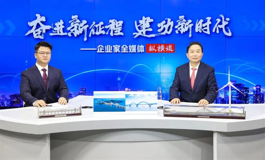 中铁大桥局集团公司党委书记、董事长文武松(右)做客湖北日报企业家全媒体纵横谈。(湖北日报全媒记者 柯皓 摄)