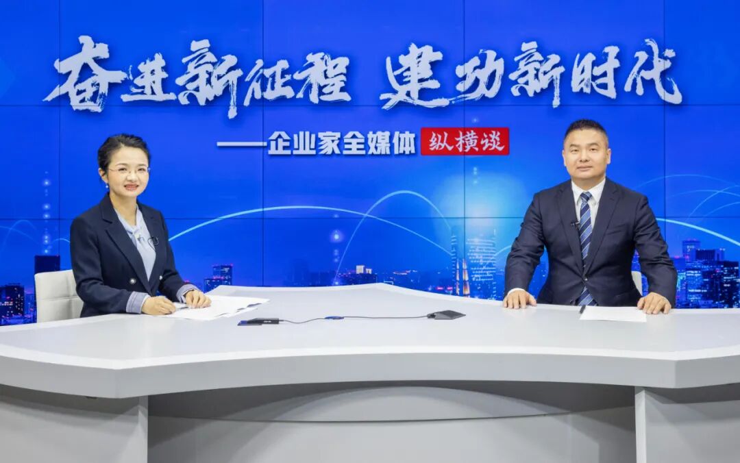 湖北潜网集团董事长康峻(右)做客湖北日报企业家全媒体纵横谈。(湖北日报全媒记者 薛婷 摄)