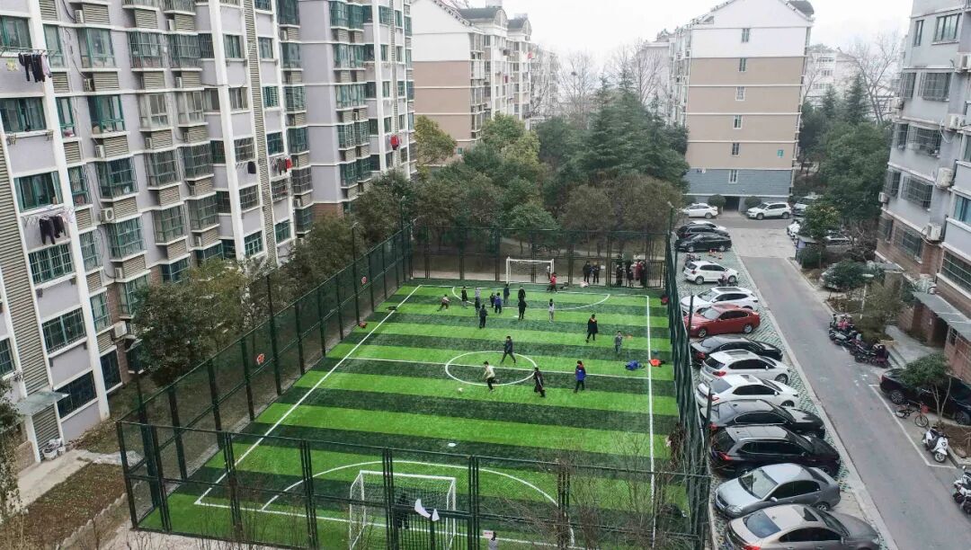 小朋友们在居民小区内的球场踢球。赵启瑞(中经视觉)