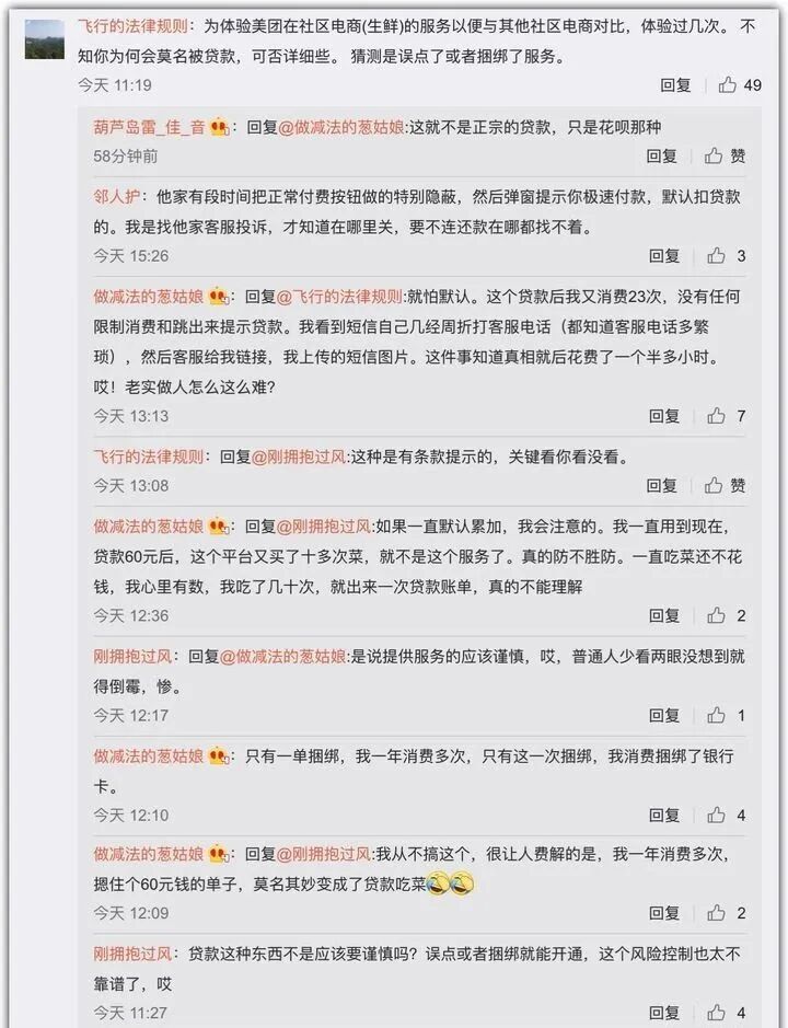 昨天,微博用户“做减法的葱姑娘”爆料自己遭遇到美团偷开金融贷款服务的遭遇,引发网友们的强烈关注。