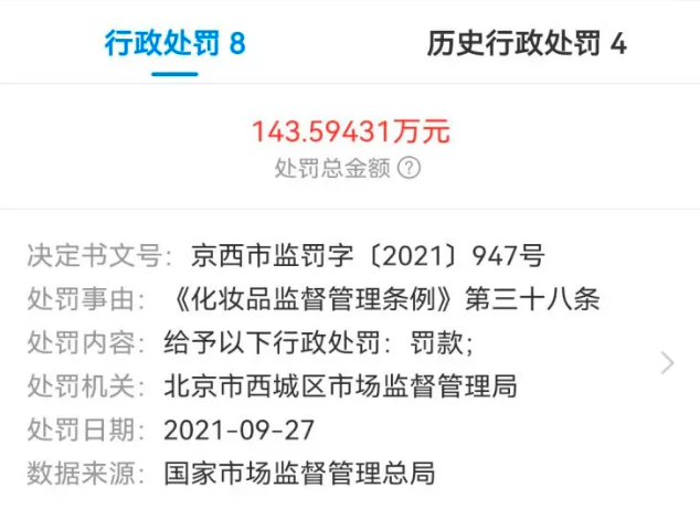 据天眼查信息显示,9月份寺库还因为违反了《化妆品监督管理条》被北京市市场监督管理局处以罚款。