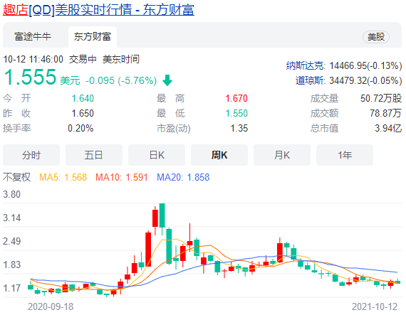 趣店的最新收盘价为1.55美元,跟上市初期最高的35.45美元相比,下跌了95%之多,和四库算是凑成了一对“难兄难弟”。