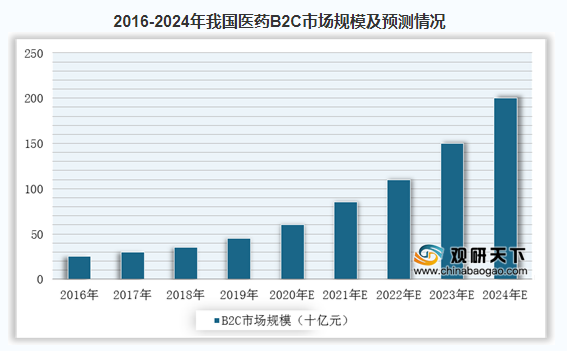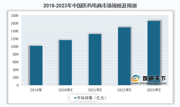 数据显示,2019年中国医药电商市场规模突破千亿元,达到1020亿元;预测在2023年将增长至1660亿元左右。