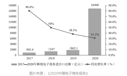 跨境电商进出口规模保持高速增长:2020年,国内跨境电子商务蓬勃发展,海关总署数据显示,全国跨境电商进出口总额达1.69万亿元,按可比口径计算增长31.1%。