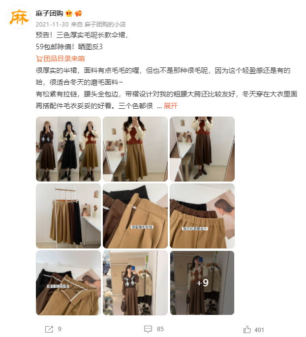 但有些博主就不一样了,他们几乎每条推广内容都带上了购买链接,除了夸赞商品颜值高、质量高,更会强调低价或合算。这些看似在分享穿搭、美妆、零食的博主,都有一个共同的名字——团购博主。