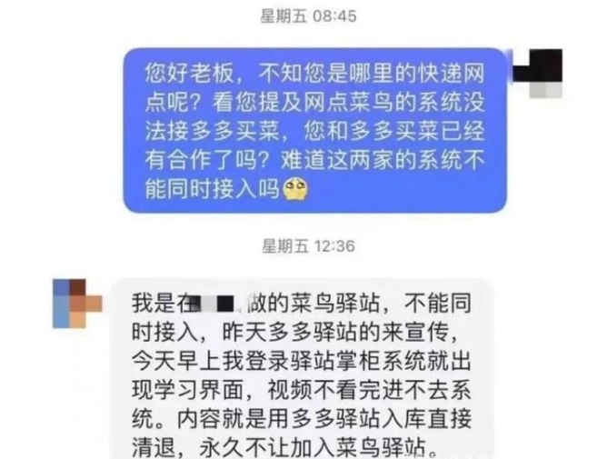 而菜鸟驿站这边肯定是不会让菜鸟改名多多,于是就在拼多多的活动发布之后,菜鸟驿站方面也下发要求,禁止驿站入库多多买菜的订单,否则将永久清退。