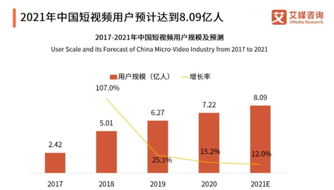 但从另一个角度来说,最近几年存量市场竞争中,短视频行业早就已经进入到饱和状态。数据显示,2020年我国短视频用户增长规模同比约为15.2%,然而这一数据相比较2018年的107%来说已经有了断崖式的下滑。