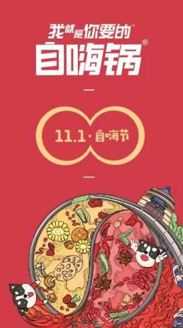 11.11到来前,自嗨锅将打造就是你要的“自嗨节”,与双11同价,美味不等待!让广大需要加班的从业人员无需外卖,随时自嗨,为创更高的业绩努力奋斗11.11加班餐,有自嗨锅助力,更有持续动力!