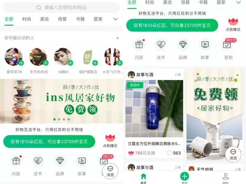 用户可以在这个平台上送出自己的闲置物品,获得积分,也就是小红花,之后,可以用小红花换取其它的物品,而接受者就需用相应的小红花进行换取,同时,还需支付8-12元的快递费。