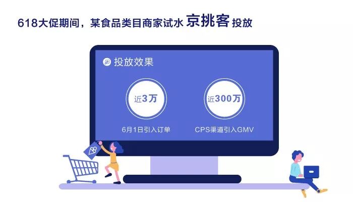 某食品类目商家618推广首次尝试京挑客投放,在通用计划策略指导下,通过提升佣金比例,增强主推商品竞争力,抢占更多流量资源,配合裂变广告、京东饭粒等多场景联动触达用户,京挑客全渠道站长和定向合作资源覆盖,以及618品类、店铺活动搭配高佣金爆品推广联合助攻,成功在6月1日活动开门红当日引入近3万订单,CPS渠道引入GMV近300万。