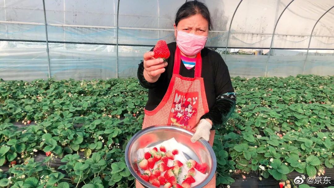 京东为此发布“告全国农人书”开启“全国生鲜产品绿色通道”,如京东协助四川省都江堰草莓果农、三亚果农解决滞销问题,助力农户的农产品销售。