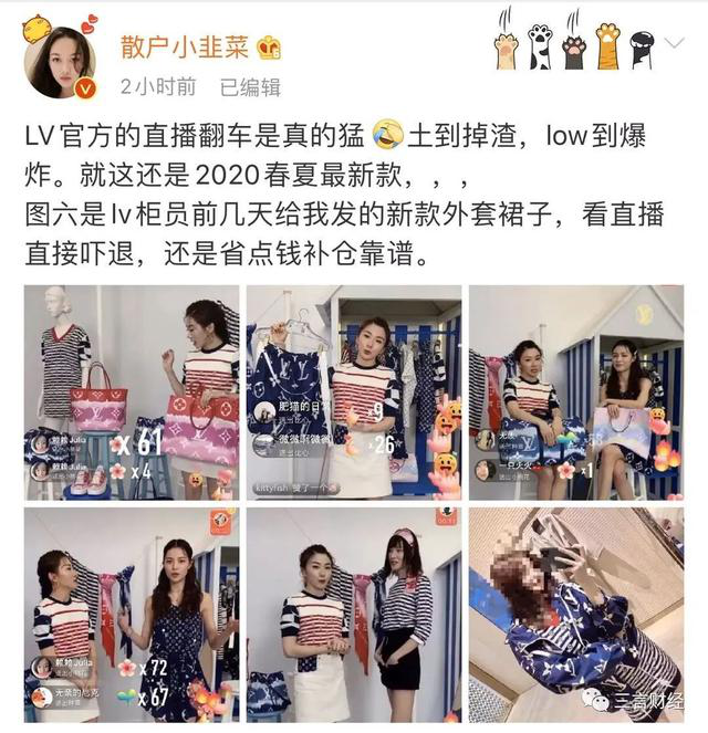 此外也有评论表示,失败更多应该归咎于LV公司的内因,这次直播间“落水”曝露的是LV公司总习惯于在大型时装秀上做宣传,而在互联网上则显得实力欠缺,平时“高冷”的态度一定程度阻碍了他们往线上发展的道路。
