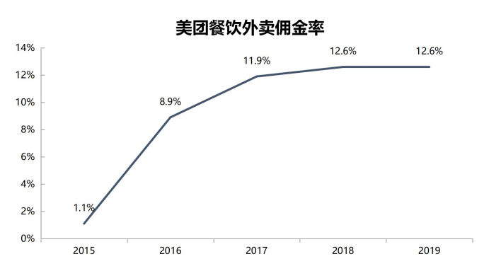 美团财报显示,餐饮外卖业务的整体佣金率已经从2015年的1.1%增至2019年的12.6%。尽管一季度美团也相应的出台了佣金返还等举措,但对比饿了么的直接减免佣金,美团则是将佣金补贴到在线广告等服务上。