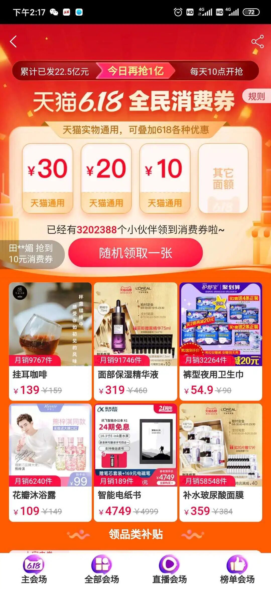 5月25日,天猫618开启预售。与预售同时开始的是,天猫和多地政府、品牌一起发放的今年以来最大规模的现金消费券和补贴,预计金额超过100亿。