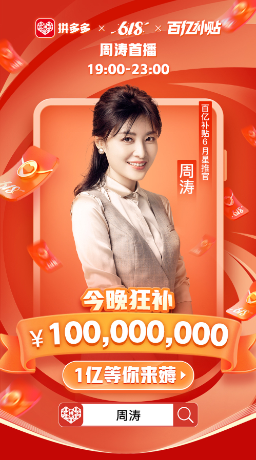4、红刊财经:知名主持人周涛首秀“拼多多618直播” 送亿元福利荐品牌全网底价