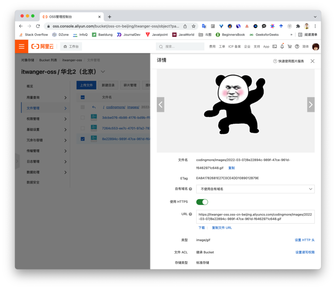 第七步,进入阿里云 OSS 后台管理,可以确认图片确实已经上传成功。
