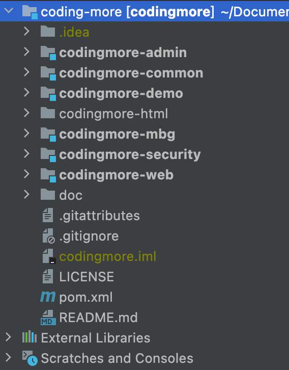 比如说 codingmore-admin 后端管理模块需要登录认证,就在 codingmore-admin/pom.xml 文件中添加 codingmore-security 依赖。