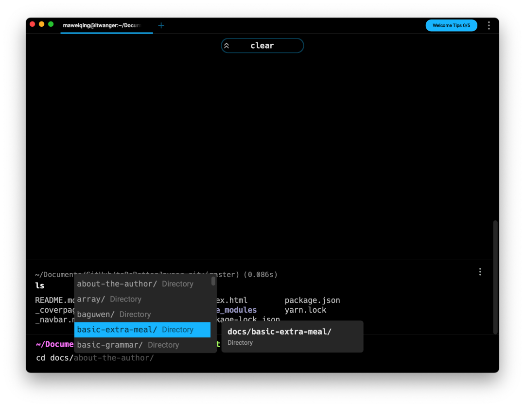 Warp 的智能提示也更加“智能化”,它会猜测你下一步的命令到底输入什么。