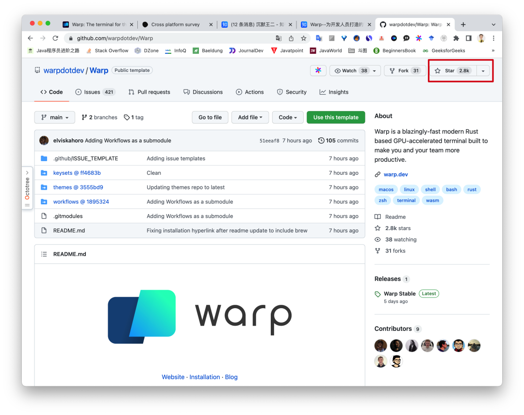 Warp 在 GitHub 上也已经开源,目前已经有 2.8k+ 的 star 了。