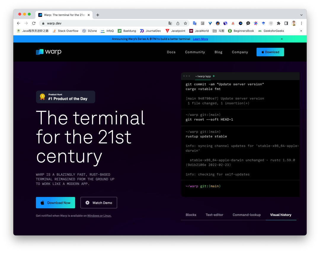 Warp,一个超级牛叉的 terminal,号称是 21 世纪的终端,还未正式发布,就获得了两千三百万美元的融资。