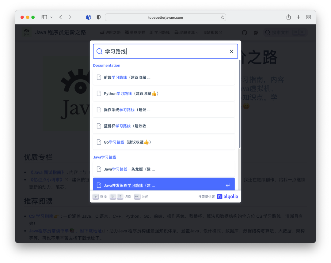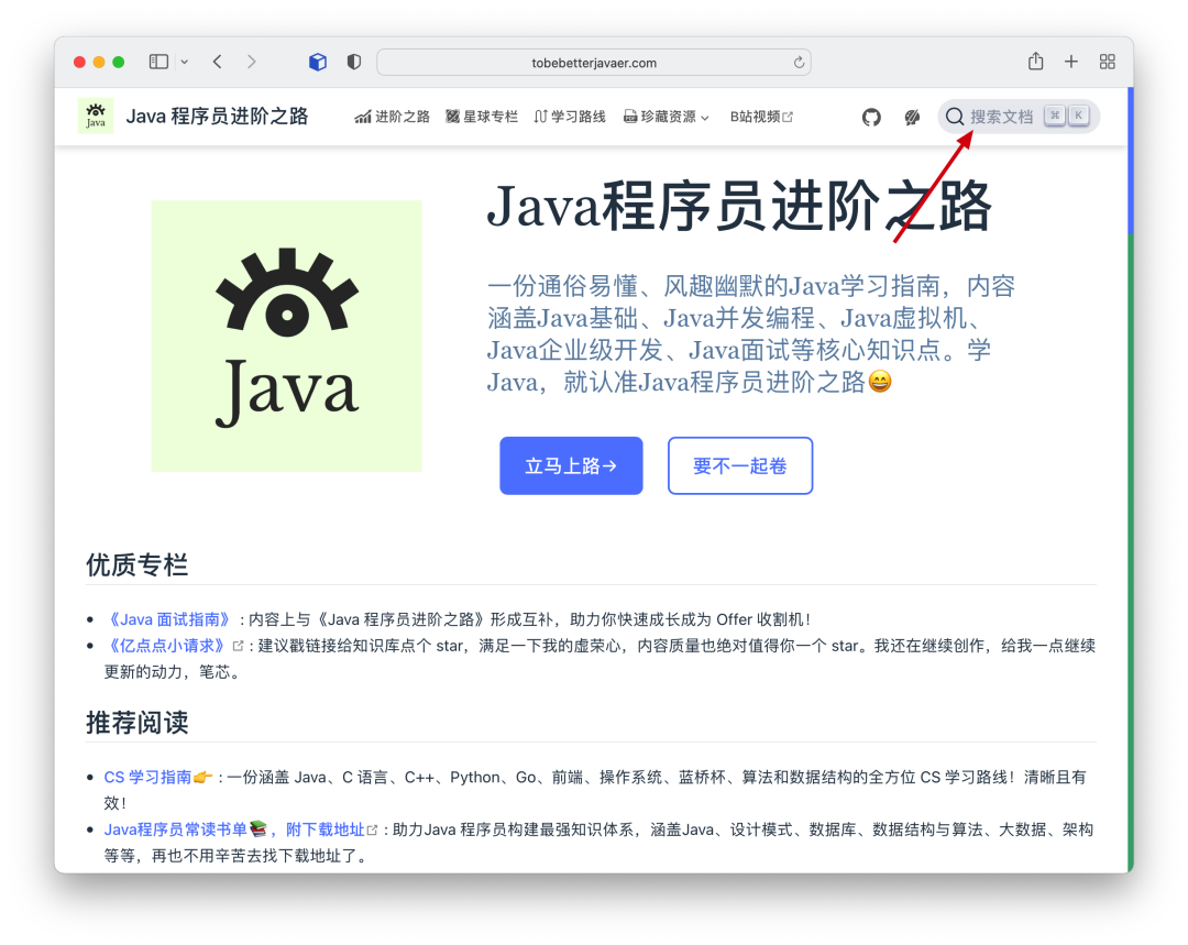不着急的小伙伴可以看看今天的内容哈,给《Java 程序员进阶之路》加了文档搜索,顺带记录一下。如果以后有其他小伙伴在使用过程中也遇到了这个问题,可以参考这篇。