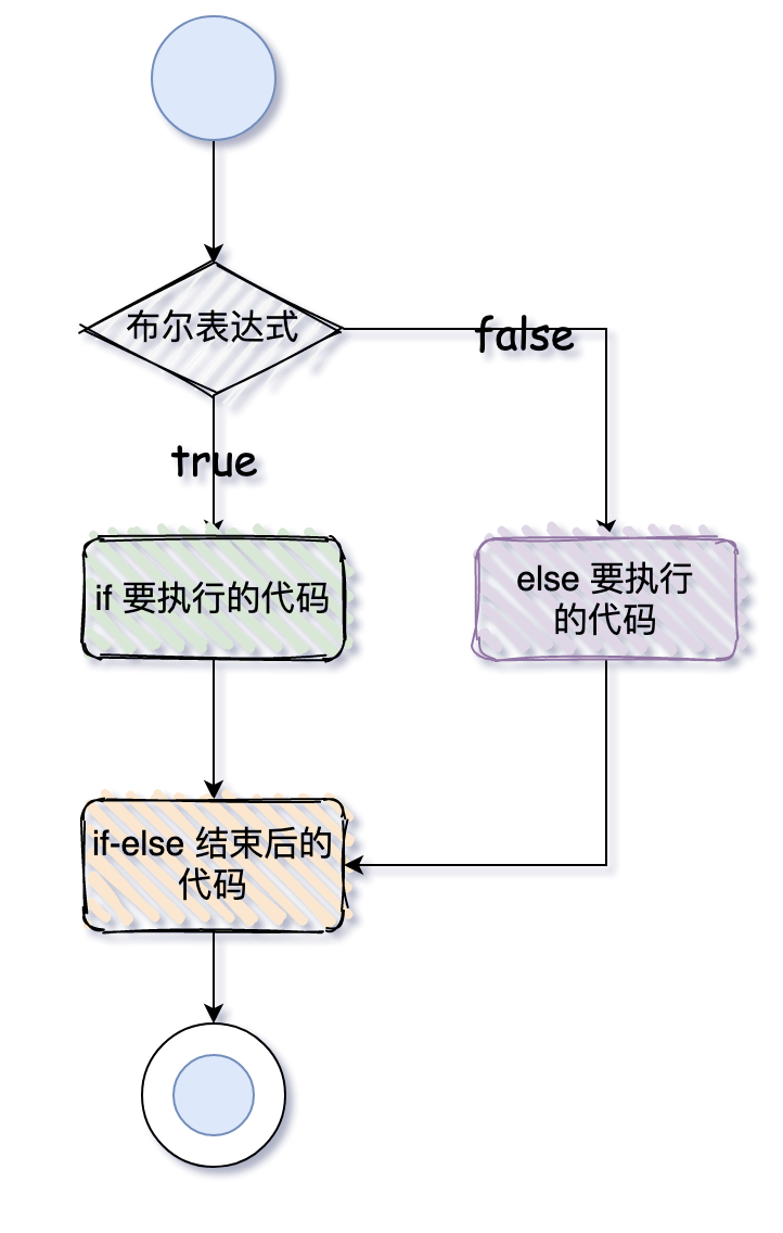 if(布尔表达式){ // 条件为 true 时执行的代码块}else{ // 条件为 false 时执行的代码块}