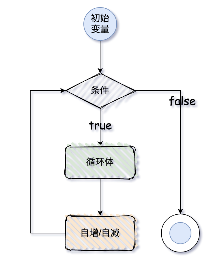 2)条件:循环每次执行时要判断的条件,如果为 true,就执行循环体;如果为 false,就跳出循环。当然了,条件是可选的,如果没有条件,则会一直循环。