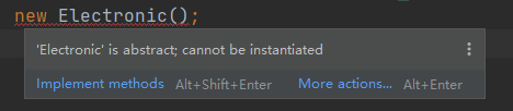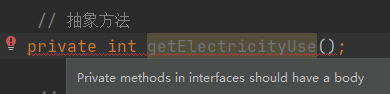 2)没有使用 private、default 或者 static 关键字修饰的方法是隐式抽象的,在编译的时候会自动加上 public abstract 修饰符。也就是说上例中的 getElectricityUse() 其实是一个抽象方法,没有方法体——这是定义接口的本意。