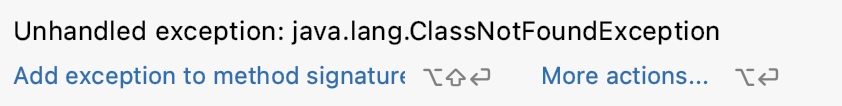 如果没做处理,比如说在 Intellij IDEA 环境下,就会提示你这行代码可能会抛出 java.lang.ClassNotFoundException。