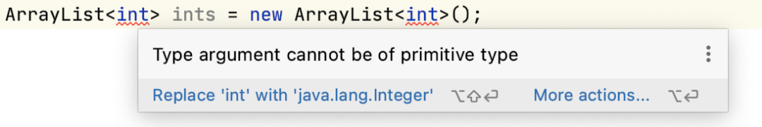 除此之外,Pizza 的泛型还可以直接使用 new 关键字进行声明,并且 Pizza 编译器会从构造方法的参数上推断出具体的对象类型,究竟是 String 还是 int。要知道,Java 的泛型因为类型擦除的原因,我们开发人员是无法知道一个 ArrayList 究竟是 ArrayList<String> 还是 ArrayList<Integer> 的。