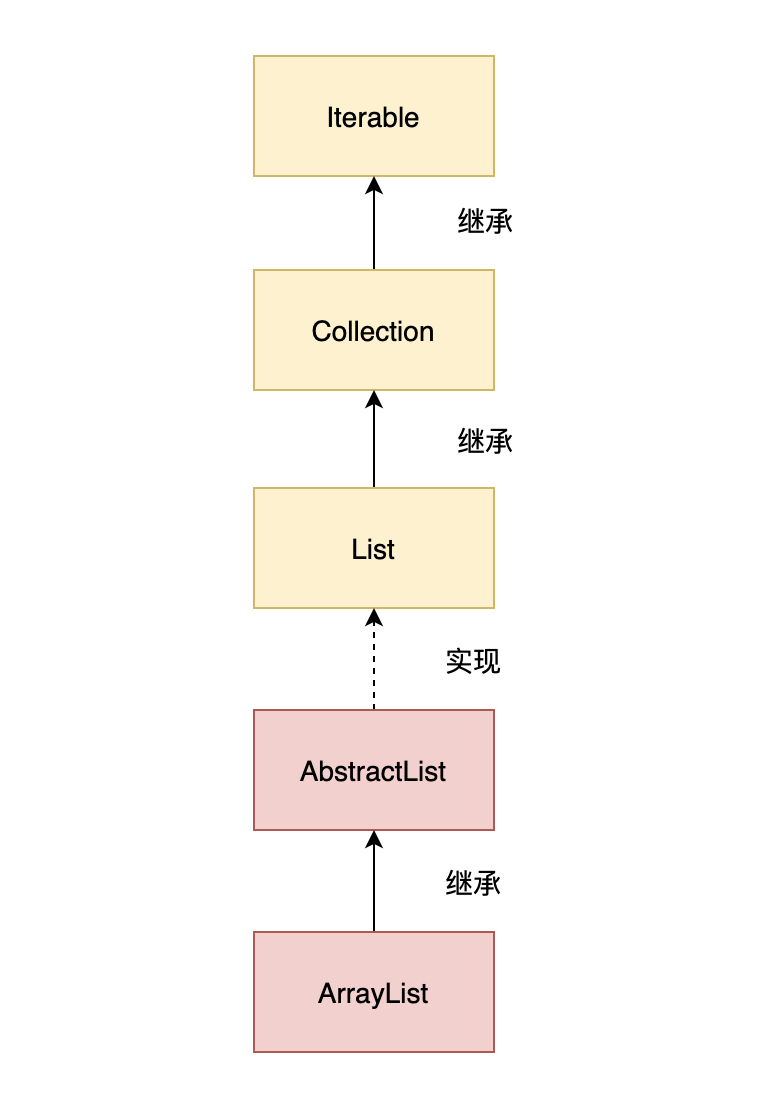 ArrayList 实现了 List 接口,继承了 AbstractList 抽象类。