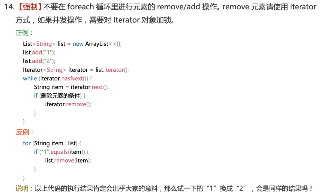 那其实在阿里巴巴的 Java 开发手册里也提到了,不要在 for-each 循环里进行元素的 remove/add 操作。remove 元素请使用 Iterator 方式。