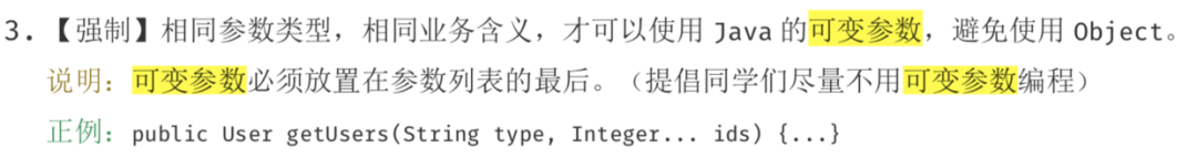 说到可变参数,我想起来阿里巴巴开发手册上有这样一条规约。