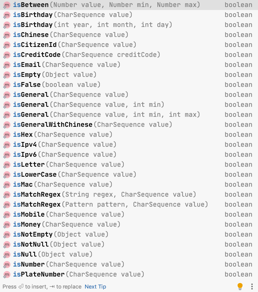 做 Web 开发的时候,后端通常需要对表单提交过来的数据进行验证。Hutool 封装的 Validator 可以进行很多有效的条件验证: