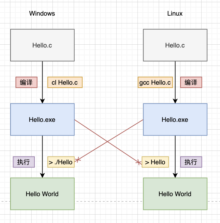一开始,项目组打算使用 C++,但 C++ 无法达到跨平台的要求,比如在 Windows 系统下编译的 Hello.exe 无法直接拿到 Linux 环境下执行。