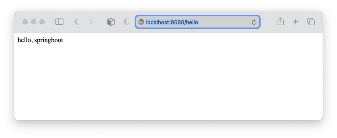 @Controllerpublic class HelloController { @GetMapping("/hello") @ResponseBody public String hello() { return "hello, springboot"; }}