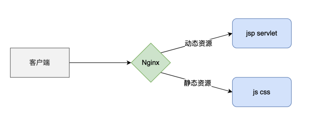 我们可以根据一些规则,把动态资源和静态资源分开,然后通过 Nginx 把请求分开,静态资源的请求就不需要经过 Web 服务器处理了,从而提高整体上的资源的响应速度。