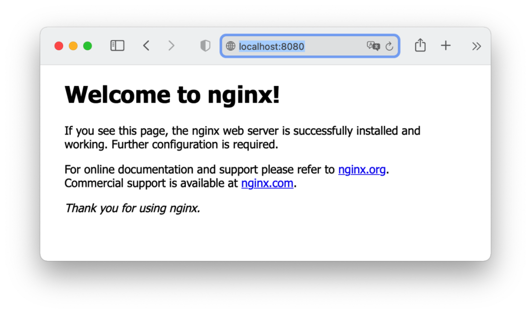 第四步,在浏览器地址栏通过 localhost:8080 访问,可以看到以下欢迎页面。