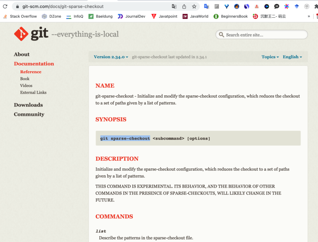 最后还是浏览 Git 官方手册(也可以看Pro Git)才找到了一个牛逼的命令:git sparse-checkout,它可以帮助我们在拉取远程仓库的时候只同步那些我们想要的目录和文件。