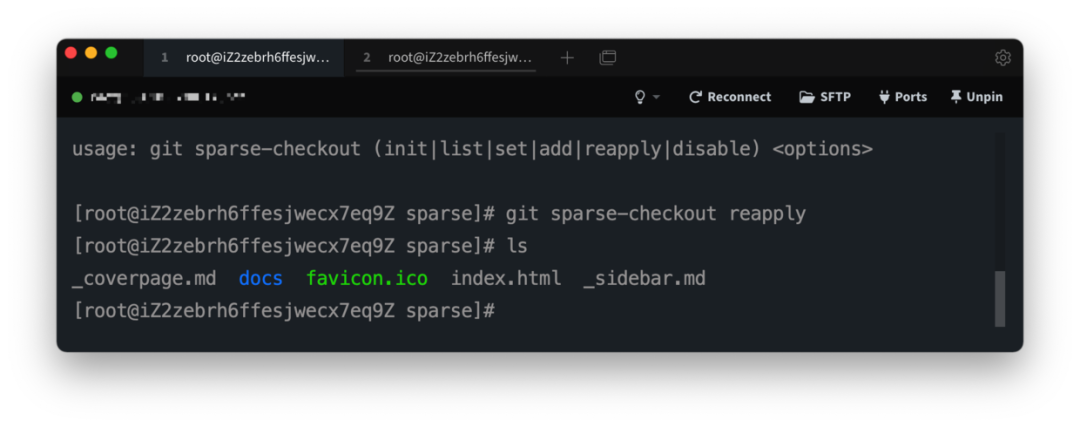 也简单,只需要执行一下 git sparse-checkout reapply 命令就可以了。
