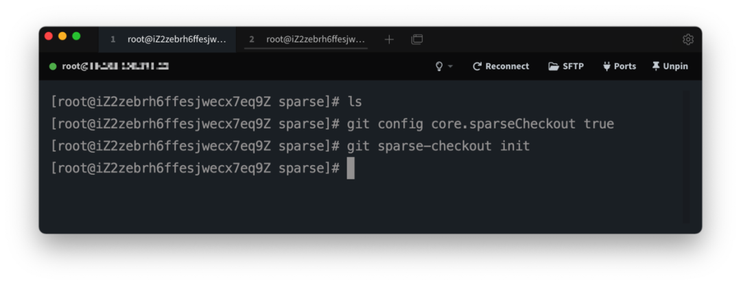 拉取到仓库后,执行 git config core.sparseCheckout true 命令启用 sparse-checkout。