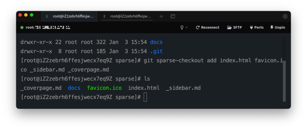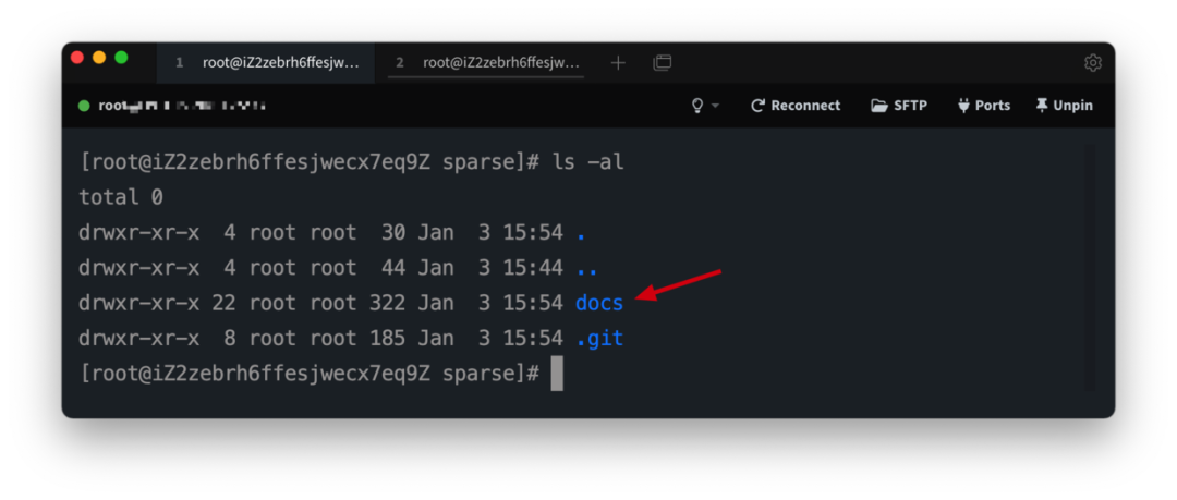 可以执行 ls -al 命令来确认 sparse-checkout 是否生效。