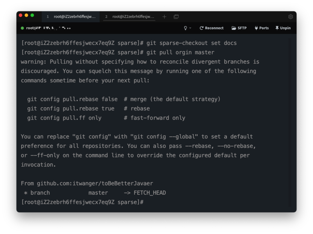 如果是第一次使用 sparse-checkout 的话,还需要执行一下 git pull orgin master 命令拉取一次。