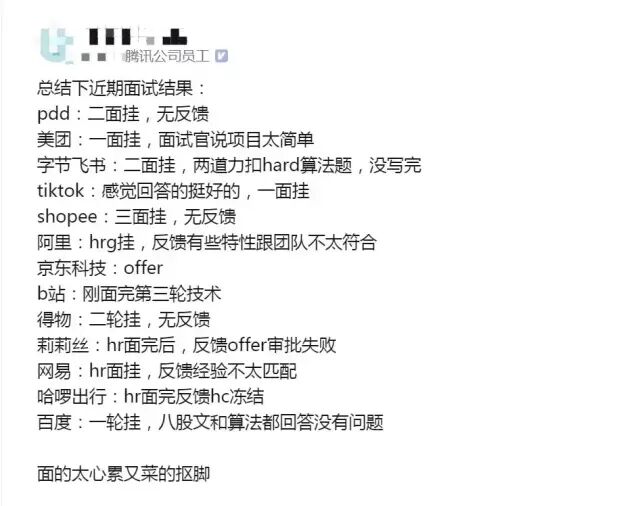 裸辞后,在家无聊看手机,看到一位鹅厂的员工离职后分享自己找工作的艰难历程。