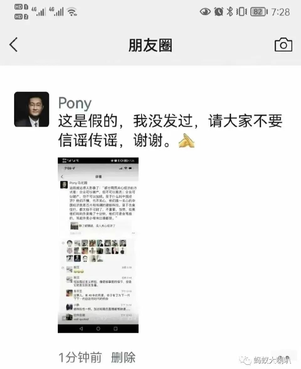 这不,今天真正的Pony Ma已经出来辟谣了,还是在朋友圈(话说过来,近几年小马哥的爆料都是出自这里)。