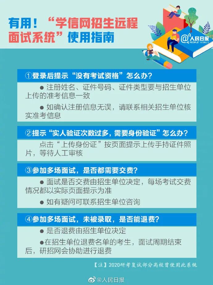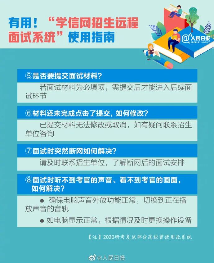 如果面试时高校使用的是学信网招生远程面试系统,考生可提前到学信网阅读往年相关信息,提前了解熟悉系统。