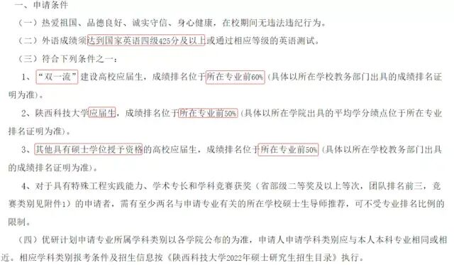 2.陕西科技大学的应届生成绩排名在所在专业前50%;