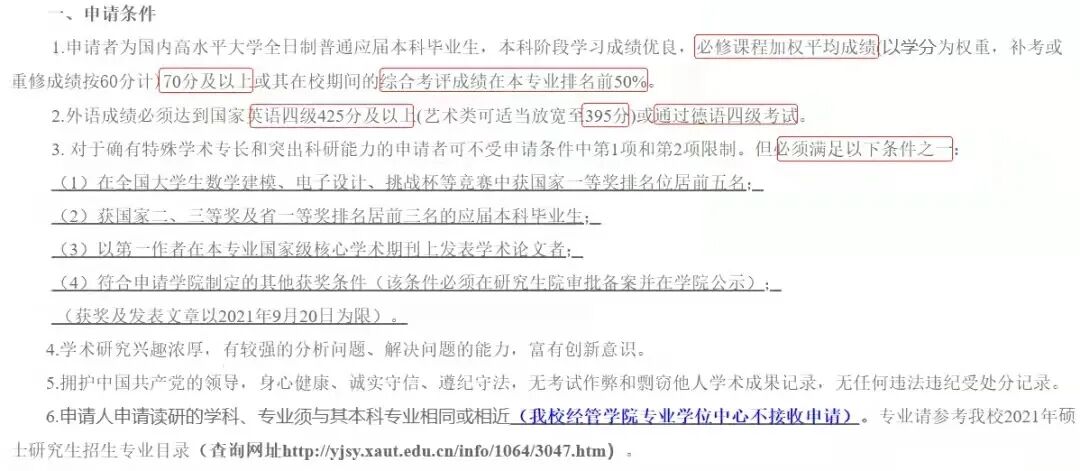 西安理工大学为提高生源质量,拓展优秀生源选拔渠道,鼓励广大校内外应届本科毕业生报考西安理工大学,于2021年7-9月对有志于报考西安理工大学2022年硕士研究生的本科生进行预选暨创新能力认定,主要硬性申请条件为: